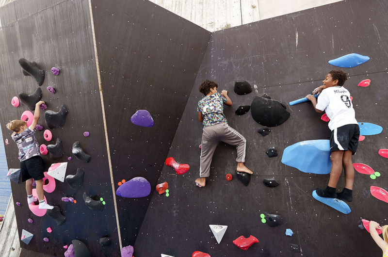 Under Urban Sports Festival stod de dygtige instruktører fra Aarhus Klatreklub klar til at vejlede alle, der havde lyst til at prøve at klatre.